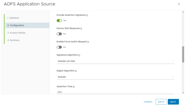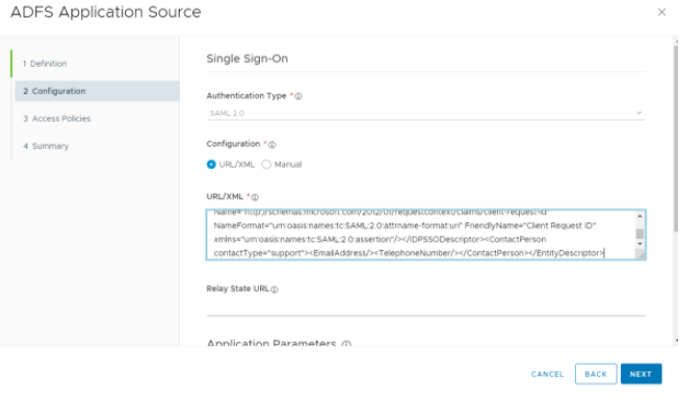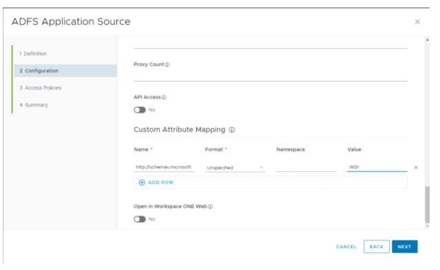 - Configuring the ADFS Application Source in Workspace ONE Access