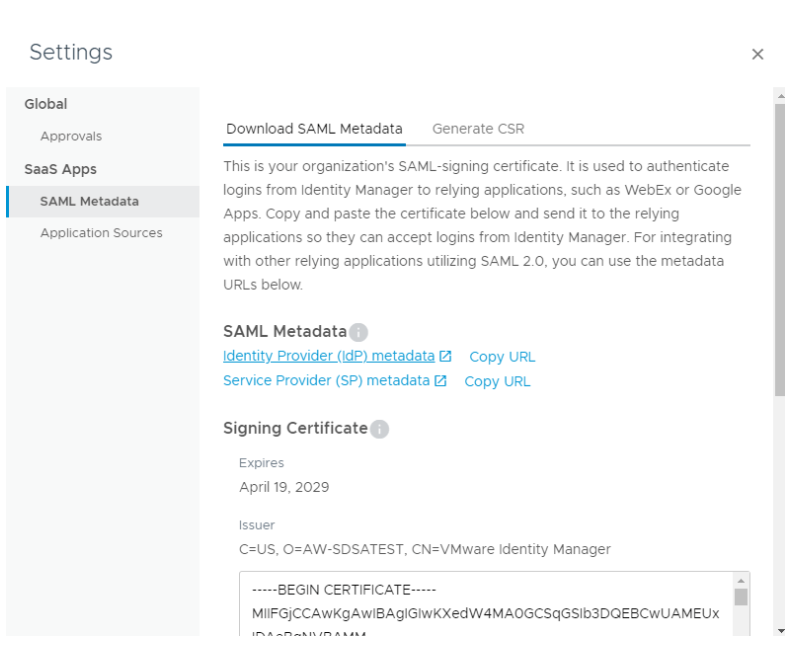 - Click on SAML Metadata