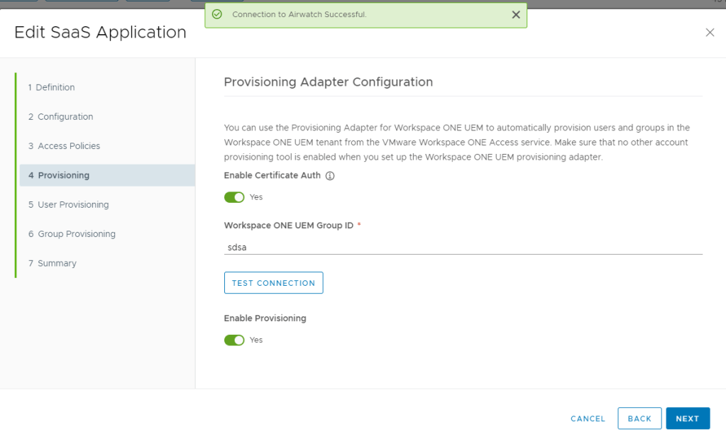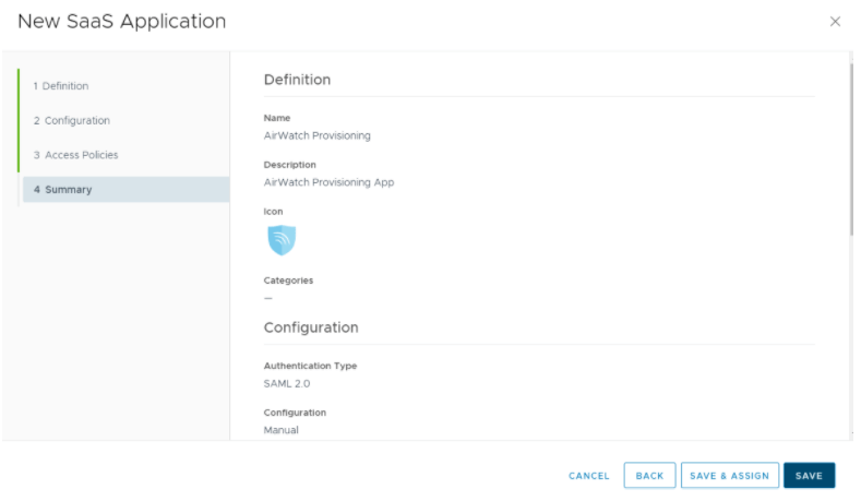 Step 3: Add AirWatch Provision App in Workspace ONE Identity