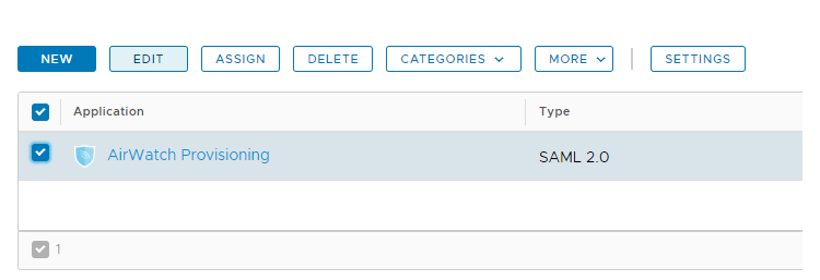- Select the AirWatch Provisioning App and Click Edit