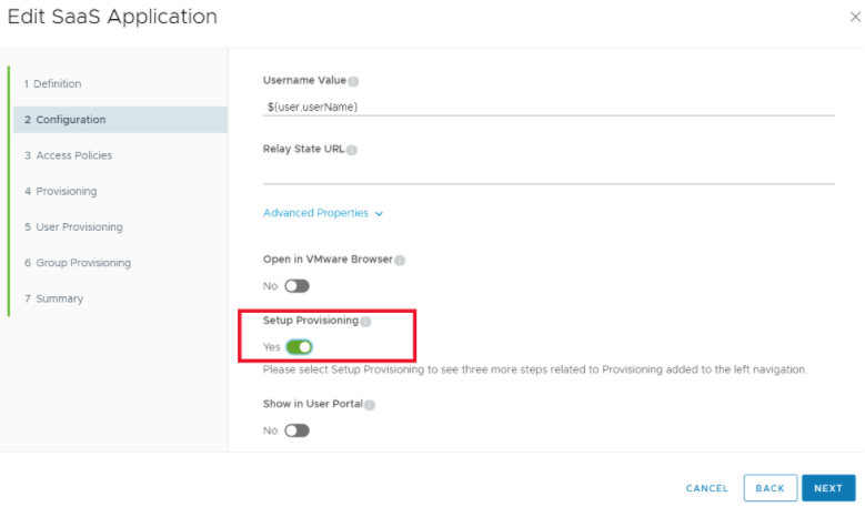 - On the Configuration Tab, enable “Setup Provisioning”