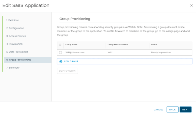 - Under Group Provisioning, add any groups you want to provision to UEM.