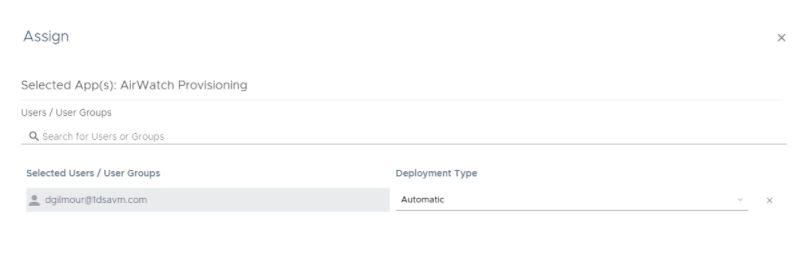 - Click the Assign button on the AirWatch Provisioning App