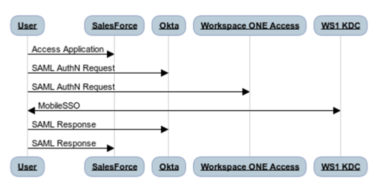 - On a trusted device (Managed), you are stuck a loop between Okta and Workspace ONE Access