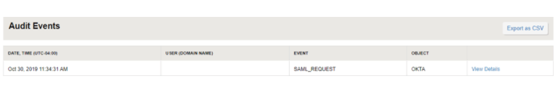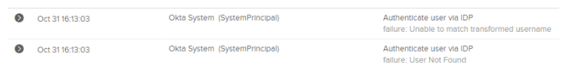Okay, so what if everything mapped out correctly in Workspace ONE access but on the return to Okta you are seeing the logon page? If you look at the audit logs in Okta, you’ll probably see something like: