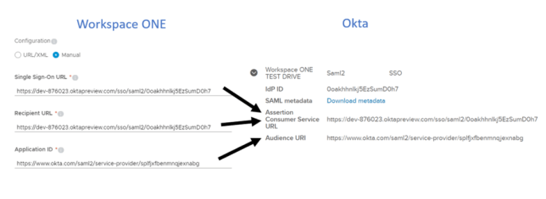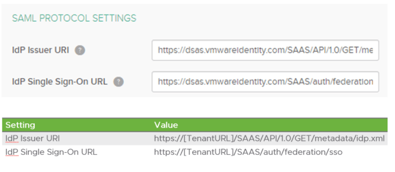 - In the Okta Cloud URL (Identity & Access Management -> Setup – Okta) , do not add the “-admin”. It needs to be end user uri. ie. https://vmware.oktapreview.com