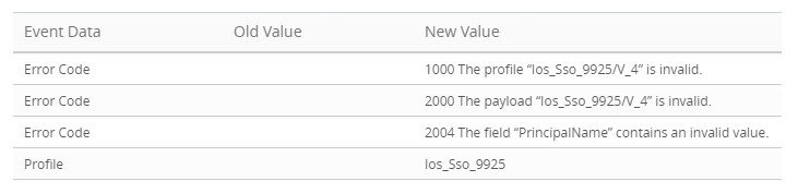 d) When trying to provision the Mobile SSO profile you receive an error that the PrincipalName contains an invalid value.