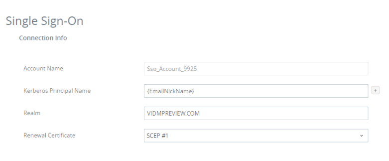 a) In Workspace ONE UEM, check your IOS Mobile SSO profile -> Single Sign-on. Verify the Realm is correct. For production it should be “VMWAREIDENTITY.COM”. However if you have localized cloud tenant this can be different (VMWAREIDENTITY.EU, VMWAREIDENTITY.ASIA, VMWAREIDENTITY.CO.UK, VMWAREIDENTITY,COM.AU, VMWAREIDENTITY.CA, VMWAREIDENITY.DE). For non-production, you might be on the vidmpreview.com domain. If this is the case, it should be “VIDMPREVIEW.COM”