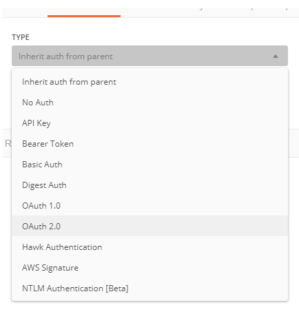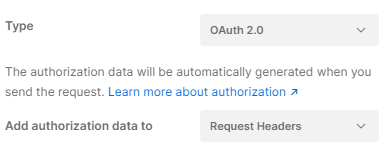 4. In the authorization section, select “OAuth 2.0” as the type: