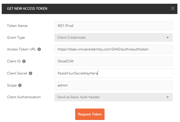 Note: This is the token you obtained via Postman and NOT the secret you generated in the Access Console.