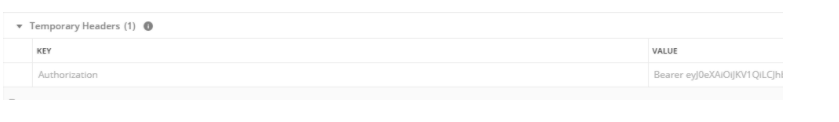 2. Click the Headers Tab and verify that the bearer token was added as a temporary header.