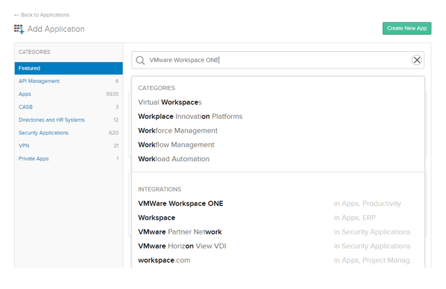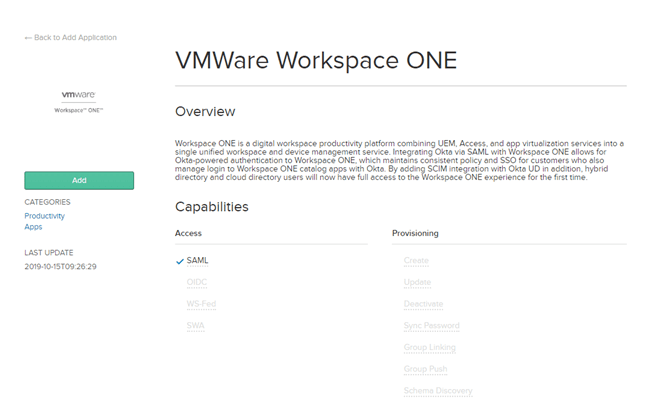Step 4:  Add the VMware Workspace ONE App in Okta