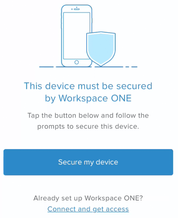 If you have configured a policy to DENY access, the user will be presented with the below message. They will have the ability to secure their device by enrolling in Workspace ONE UEM.
