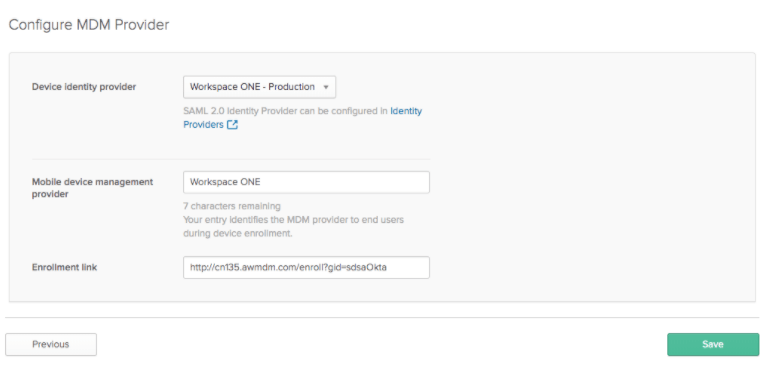 - Provide a name such as “Workspace ONE”