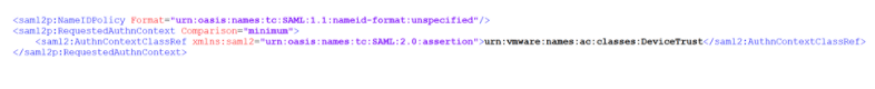 Finally, we have to configure the Identity Provider to send the correct flags to Workspace ONE Access in order to trigger the Device Trust.