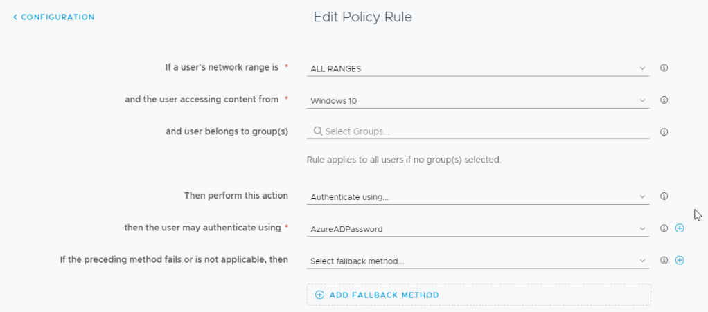 Have you had any luck with using Windows Hello and Azure SSO as the WS1 IDP? We get an error that states that the requested method “x509, MultiFactor” does not match the requested authentication method. Users who don’t use Windows Hello can log in normally.