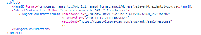 - Verify the Name ID Format and corresponding value match our configuration in Workspace ONE Access. The value in the Name ID should match the userPrincipalName in Workspace ONE Access. Adjust the configuration accordingly to match your environment.