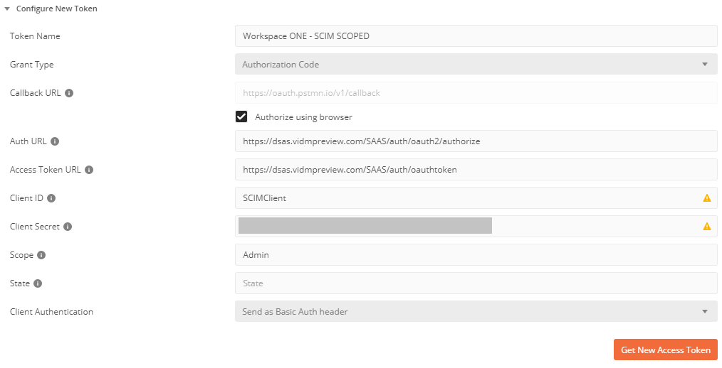 ie: https://dsas.vmwareidentity.com/SAAS/auth/oauthtoken - Under Client ID, enter your Client ID from above
