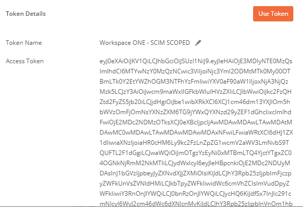 - Postman will open with a new token. This token can now be used in your SCIM Provisioning Application.