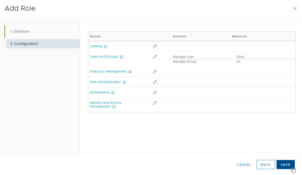 - In the Workspace ONE Access Admin Console, Click on Roles