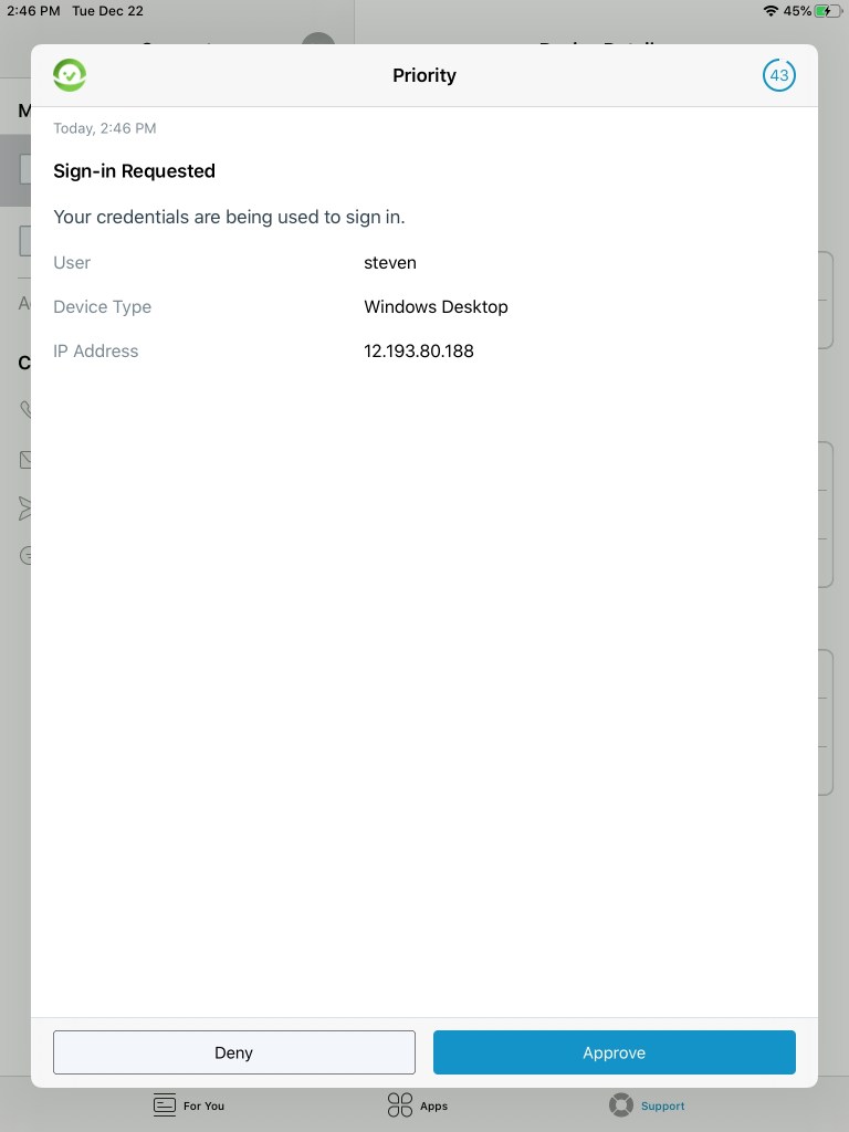 Once you’ve selected a device, all notifications will be sent to that device. Please see Resetting a Preferred Hub MFA Device for instructions on how to reset this for a user.