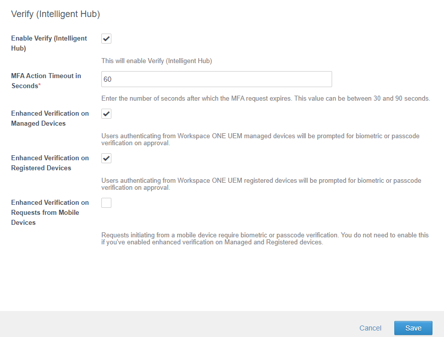 Note: This is different than VMware Verify. - Go ahead an enable the Authentication Method. I also recommend you enable Enhanced Verification as well to require biometric verification.