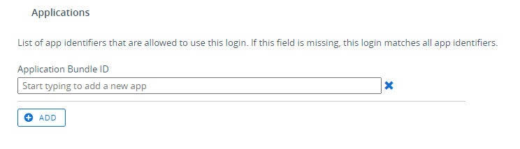 - Scroll down to Applications. In an non-production environment I recommend you leave this blank. Once you’ve completed all your testing you can optionally add your application bundle ID’s to limit which applications are allowed to use Mobile SSO. An example why you configure this is if you want your users to use Boxer for email but not allow Outlook.