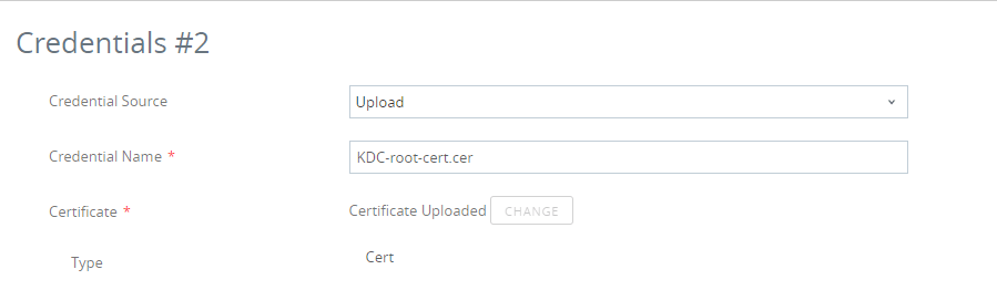 - Click the Upload button and upload the KDC Certificate we just downloaded in the previous step.