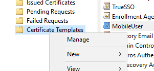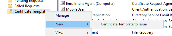 - Right mouse Certification Templates and Click New -> Certificate Template to Issue