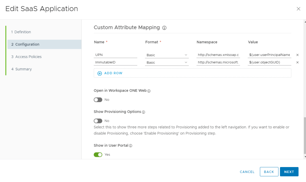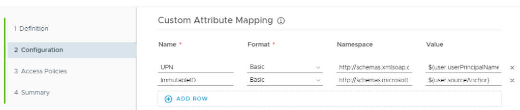 - Scroll down to Custom Attribute Mapping, make sure the correct value is used for the ImmutableID.