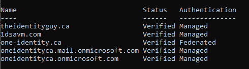 - After running the above command, if you run a “get-msoldomain”, you should see the domain is now “Federated”