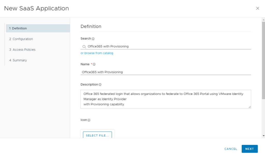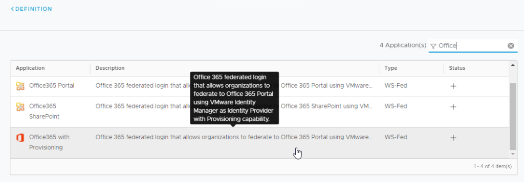 - In the Search Filter, enter “Office” and Select “Office365 with Provisioning”. You will need to use this app even though we will not be using the provisioning capabilities.