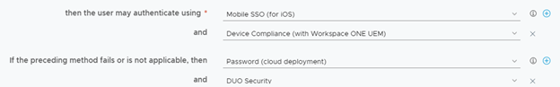 iOSThis authentication should use Mobile SSO + Device Compliance. Do not configure a fallback authentication mechanism.
