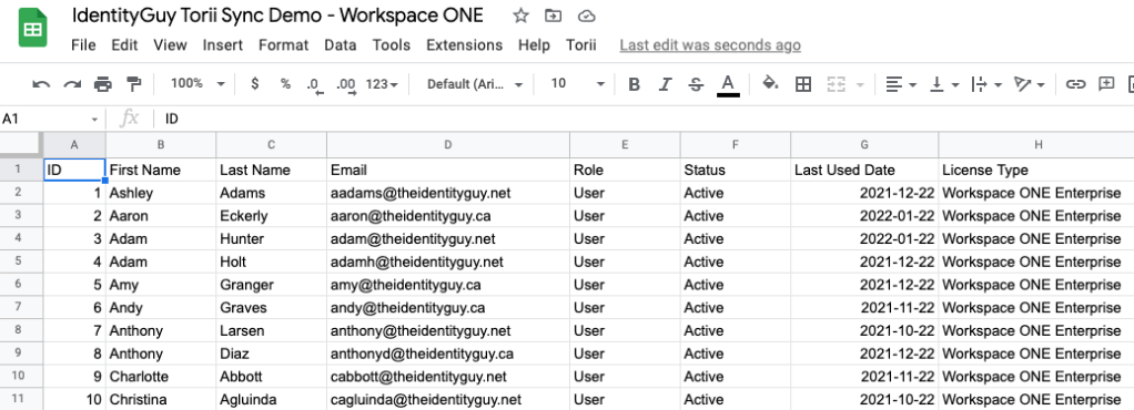 - The “status” column from the spreadsheet will map to the External Status in Torii. You will see this status in Torii in the users Tab.